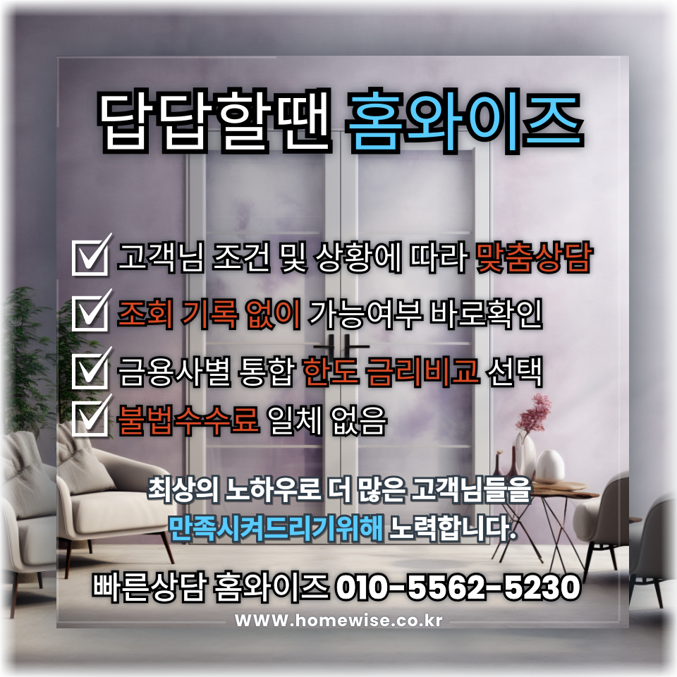 ✔ 홈와이즈론에서 맞춤형 대출 컨설팅을 받아보세요!